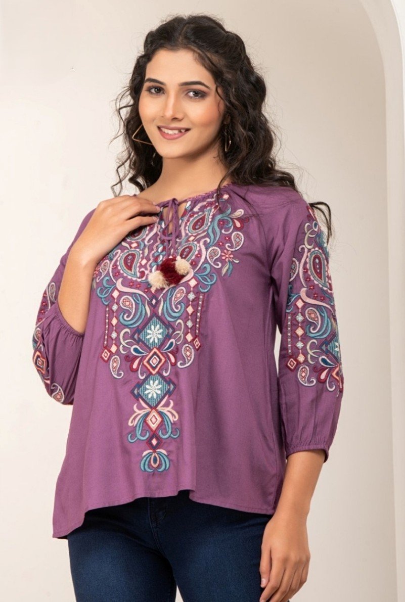 Pair this embroidered top with denims or palazzos for a chic Indo-fusion look that transitions effortlessly from casual days to festive evenings.