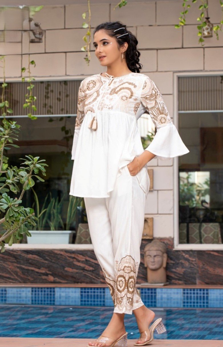 The Golden Aura Co-ord Set captures the essence of ethnic simplicity with a modern twist — making it a versatile statement piece that transitions seamlessly from day to evening with timeless appeal.