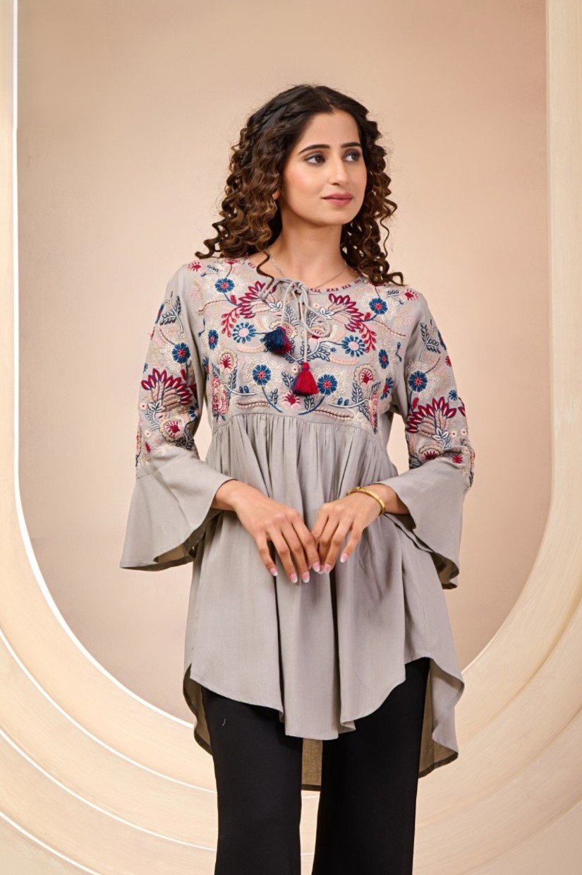 Upgrade your casual wardrobe with this beautifully embroidered flared top. Crafted for comfort and elegance, it’s the perfect blend of traditional charm and modern style.