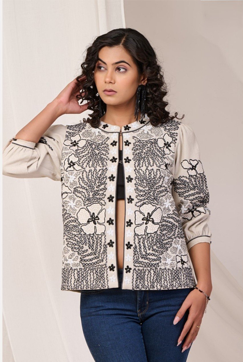 Elevate your wardrobe with this intricately embroidered cotton jacket. Pair it with denims for a chic casual vibe or layer it over a solid kurta for a sophisticated ethnic fusion look. Perfect for transitional weather, festive gatherings, or when you simply want to make a refined style statement.